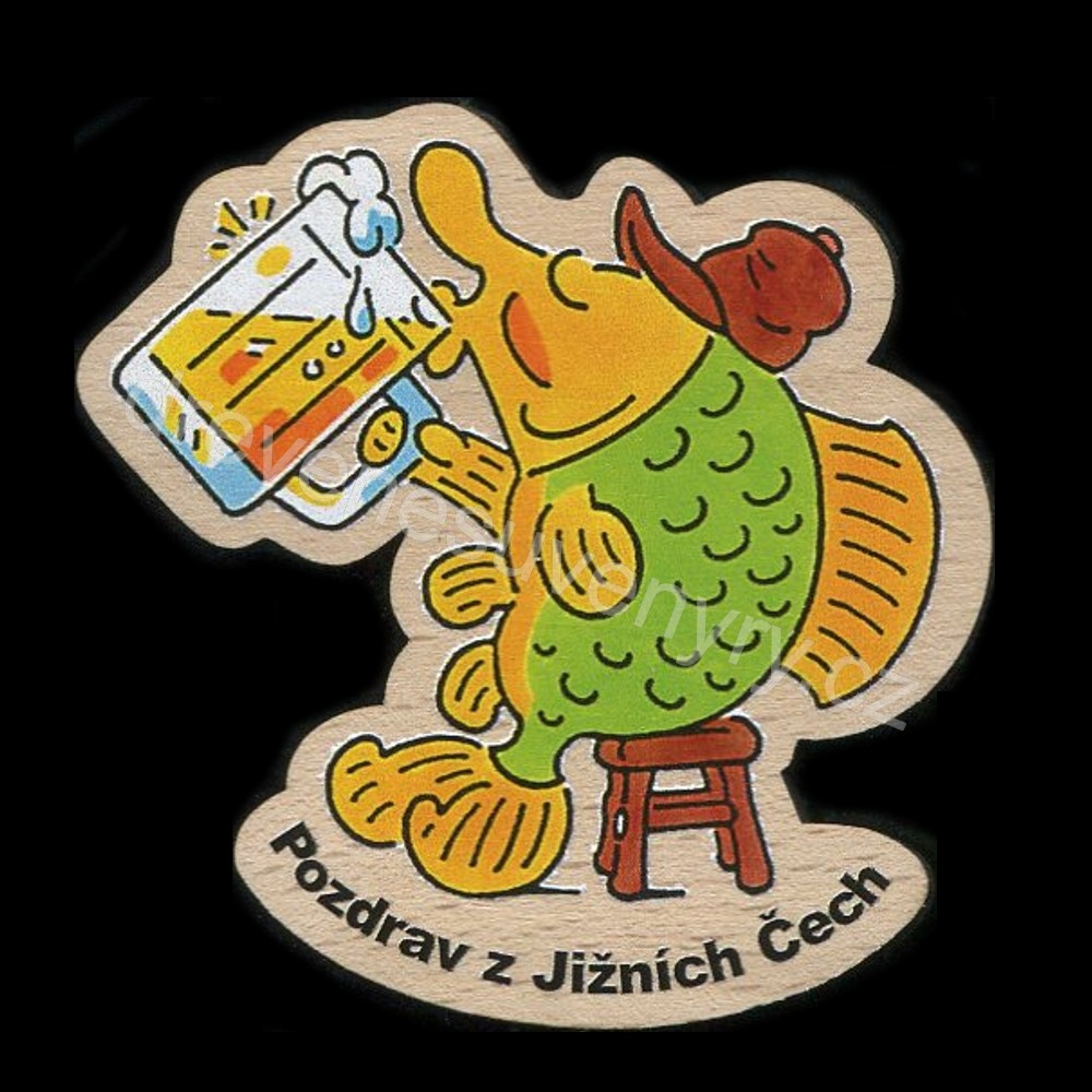 Kapr na kole - magnet - Pozdrav z Jižních Čech a Šumavy