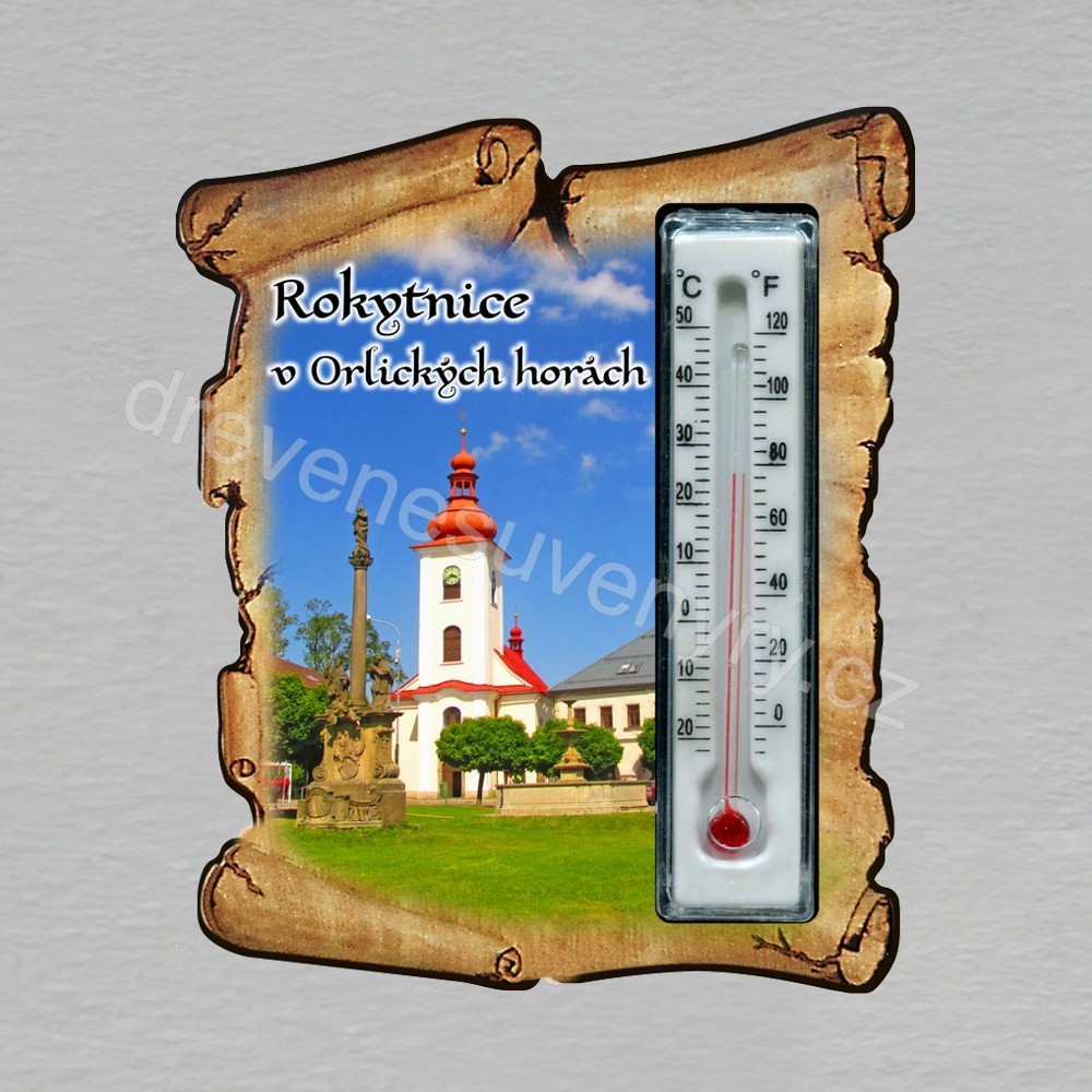 Rokytnice v Orlických horách - magnet s teploměrem - pergamen