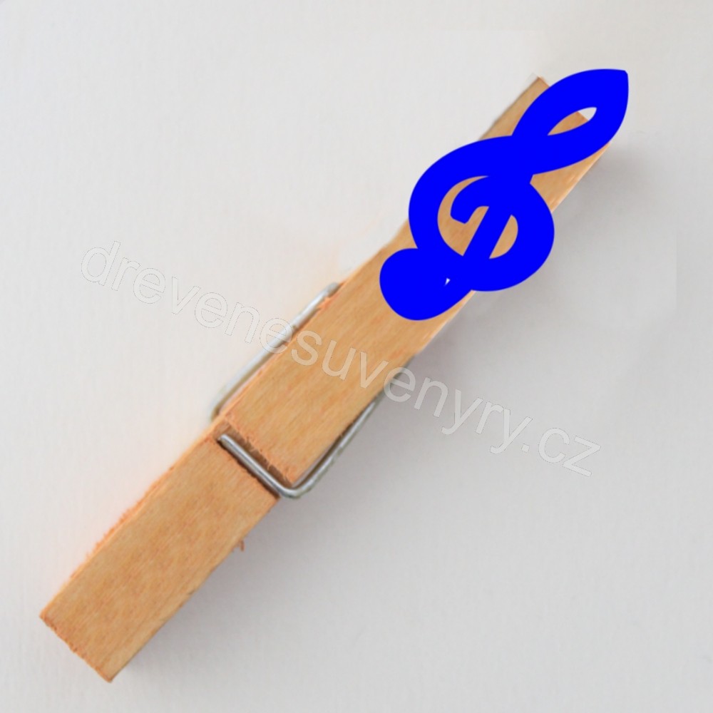 Houslový klíč - přírodní - kolíček s MAGNETEM - modř
