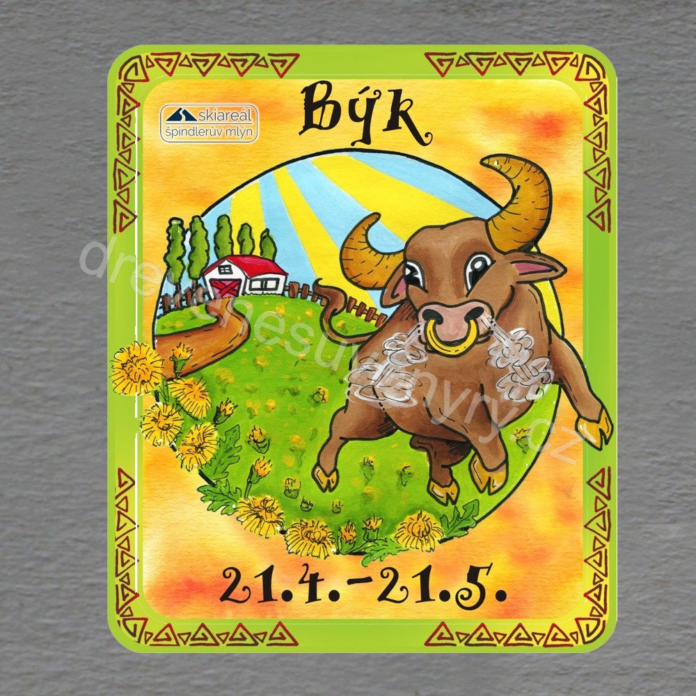 Špindlerův Mlýn - Skiareál - kresba - znamení zvěrokruhu Býk - magnet obdélník dvojitý