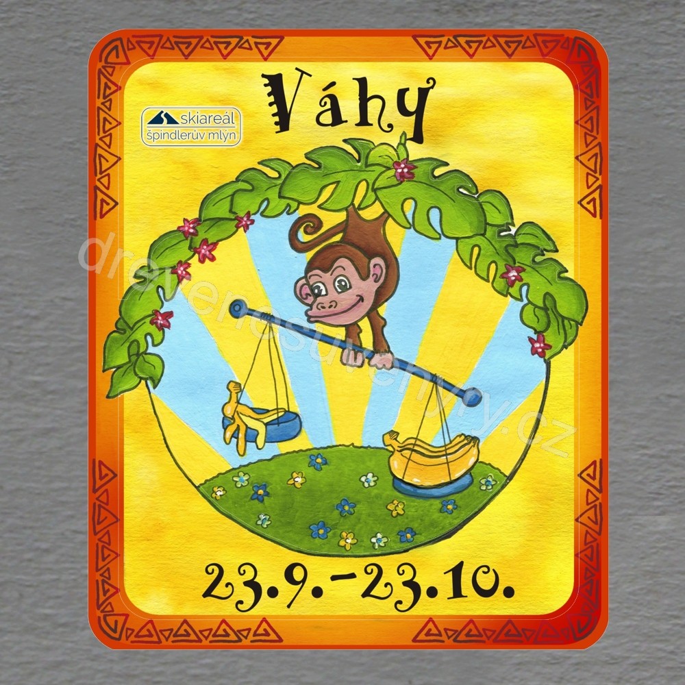 Špindlerův Mlýn - Skiareál - kresba - znamení zvěrokruhu Váhy - magnet obdélník dvojitý