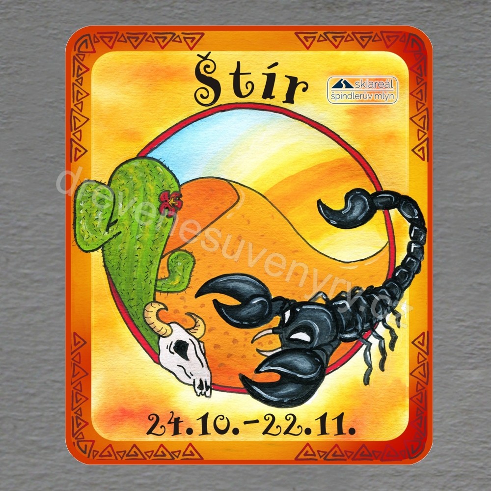 Špindlerův Mlýn - Skiareál - kresba - znamení zvěrokruhu Štír - magnet obdélník dvojitý