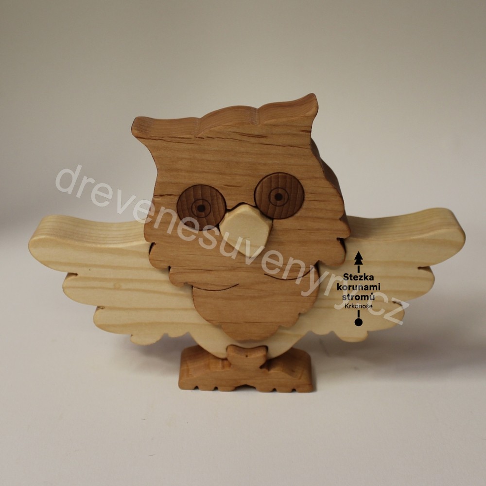 Stezka korunami stromů - Krkonoše - puzzle sova - jednostranný gravír