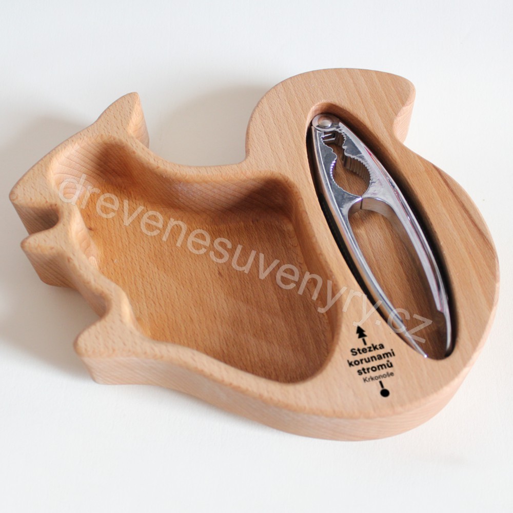 Stezka korunami stromů - Krkonoše - veverka - miska s louskáčkem - logo gravír