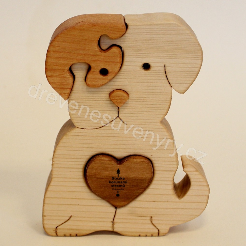 Stezka korunami stromů - Krkonoše - pes se srdcem - hnědé srdce - puzzle - jednostranný gravír