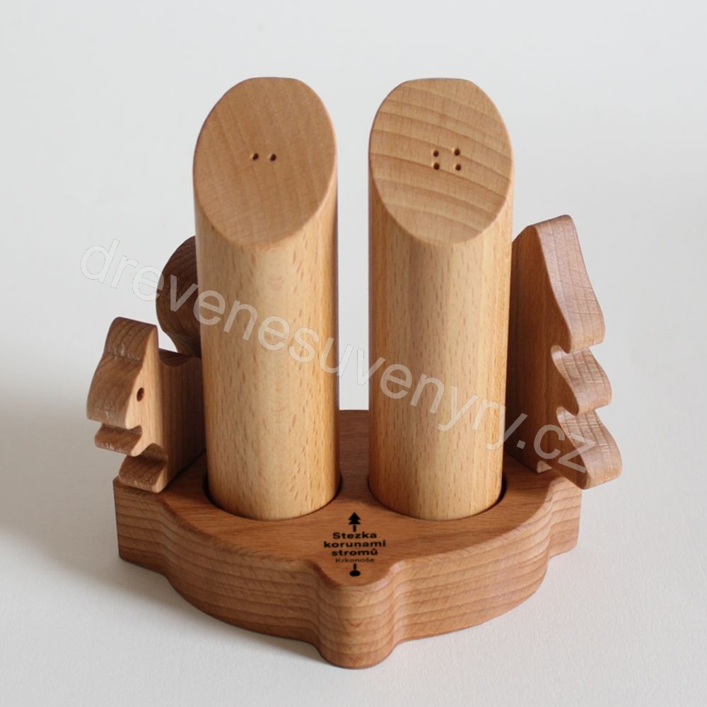 Stezka korunami stromů - Krkonoše - veverka - strom - kořenky ve stojánku - logo gravír