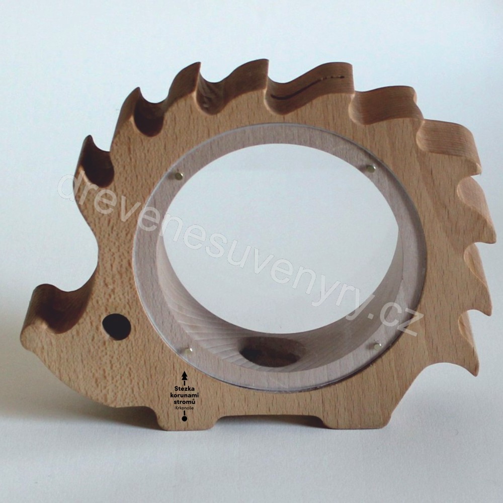 Stezka korumani stromů Krkonoše - ježek kašička - logo oboustranný gravír