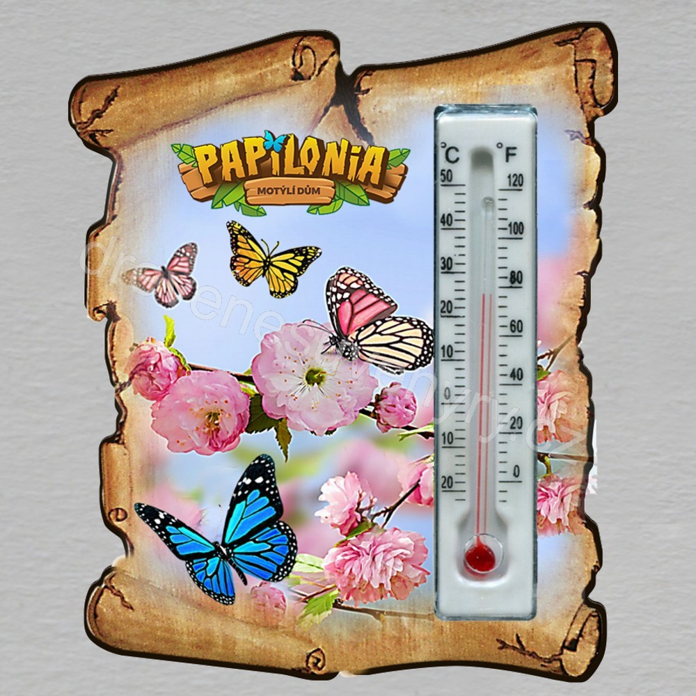 Motýlí dům Papilonia - Motýli - magnet s teploměrem - pergamen