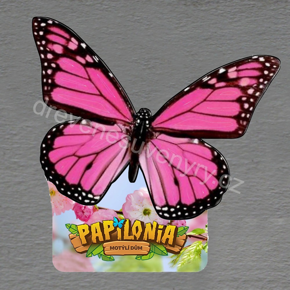 Motýlí dům Papilonia - Motýl růžový - magnet ořez dvojitý
