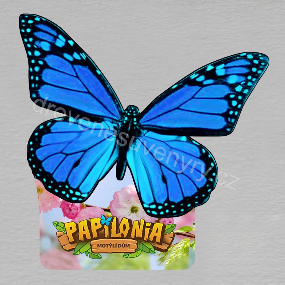 Motýlí dům Papilonia - Motýl modrý - magnet ořez dvojitý