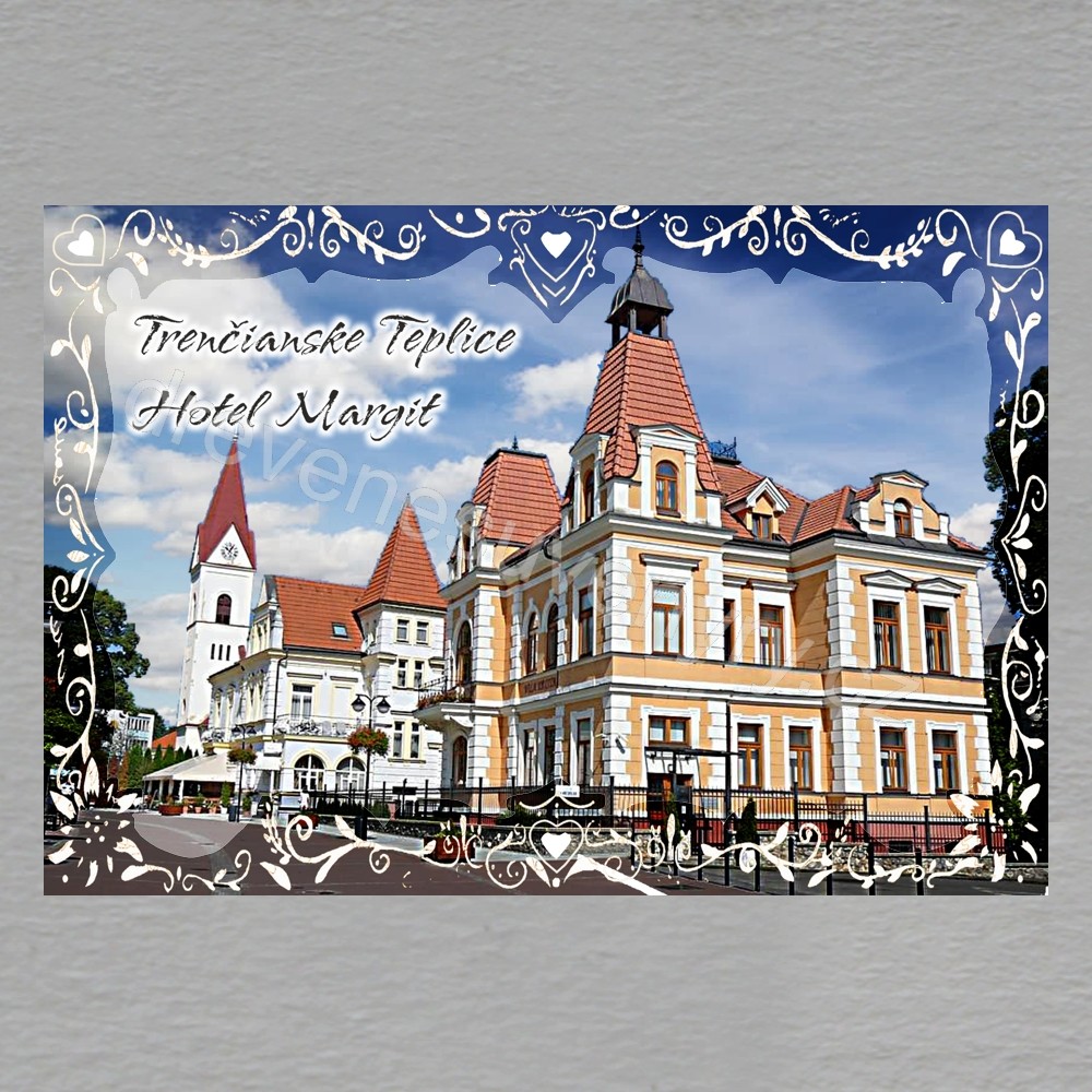 Trenčianske Teplice - Hotel Margit - magnet mini pergamen - text: Trenčianske Teplice