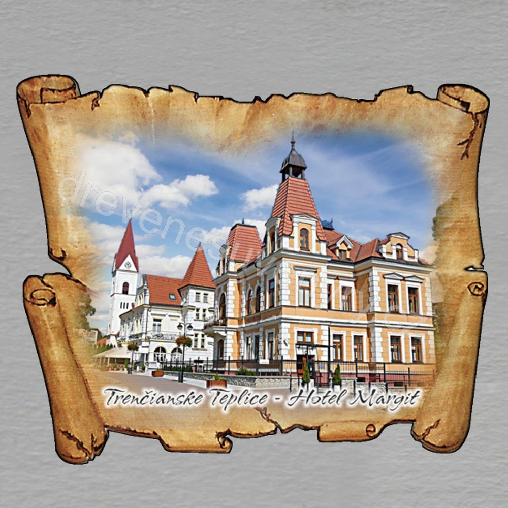 Trenčianske Teplice - Hotel Margit - magnet mini pergamen - text: Trenčianske Teplice