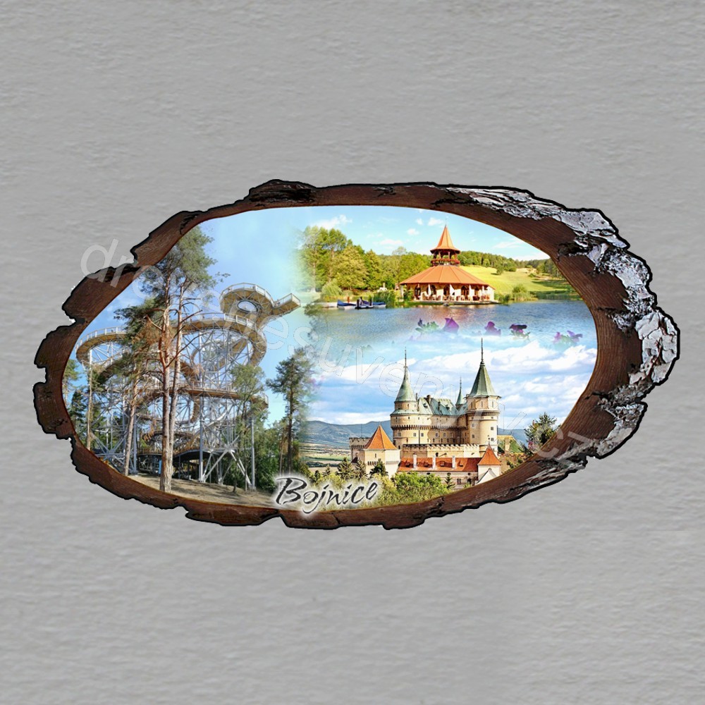 Bojnice - Vyhliadková veža - magnet kůra ovál 9cm koláž