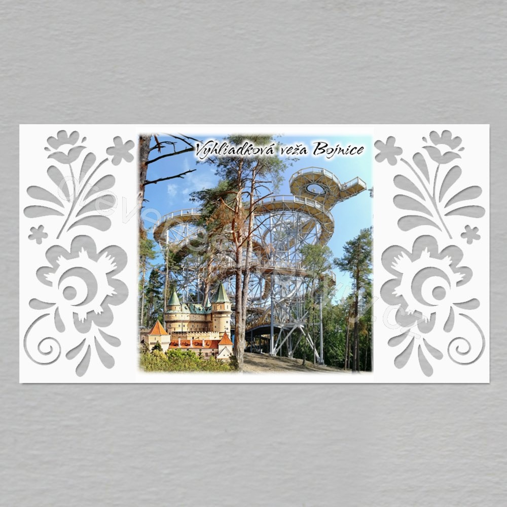 Bojnice - Vyhliadková veža - Magnet - obdélník srdce prořez- motiv Čičmany