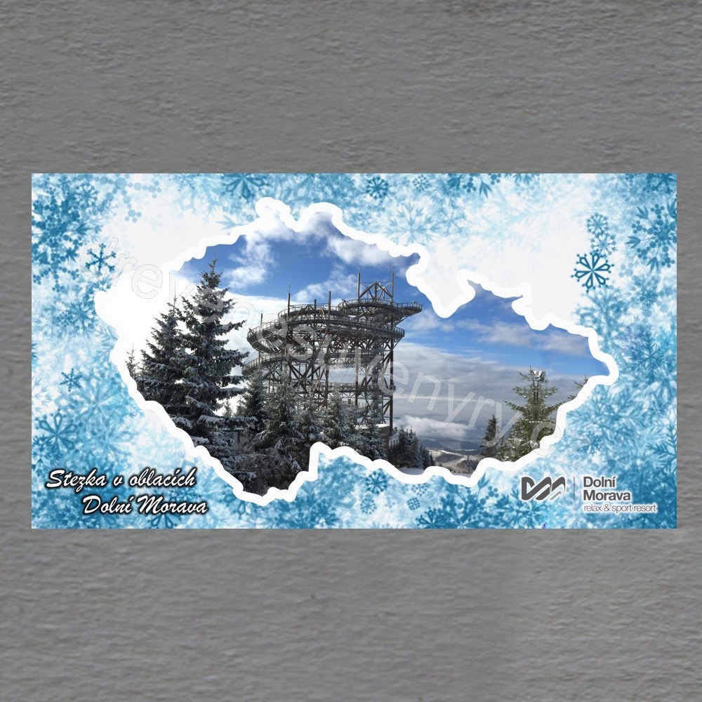 Dolní Morava - Stezka v oblacích - magnet DL mapa rám vločky - dvojitý