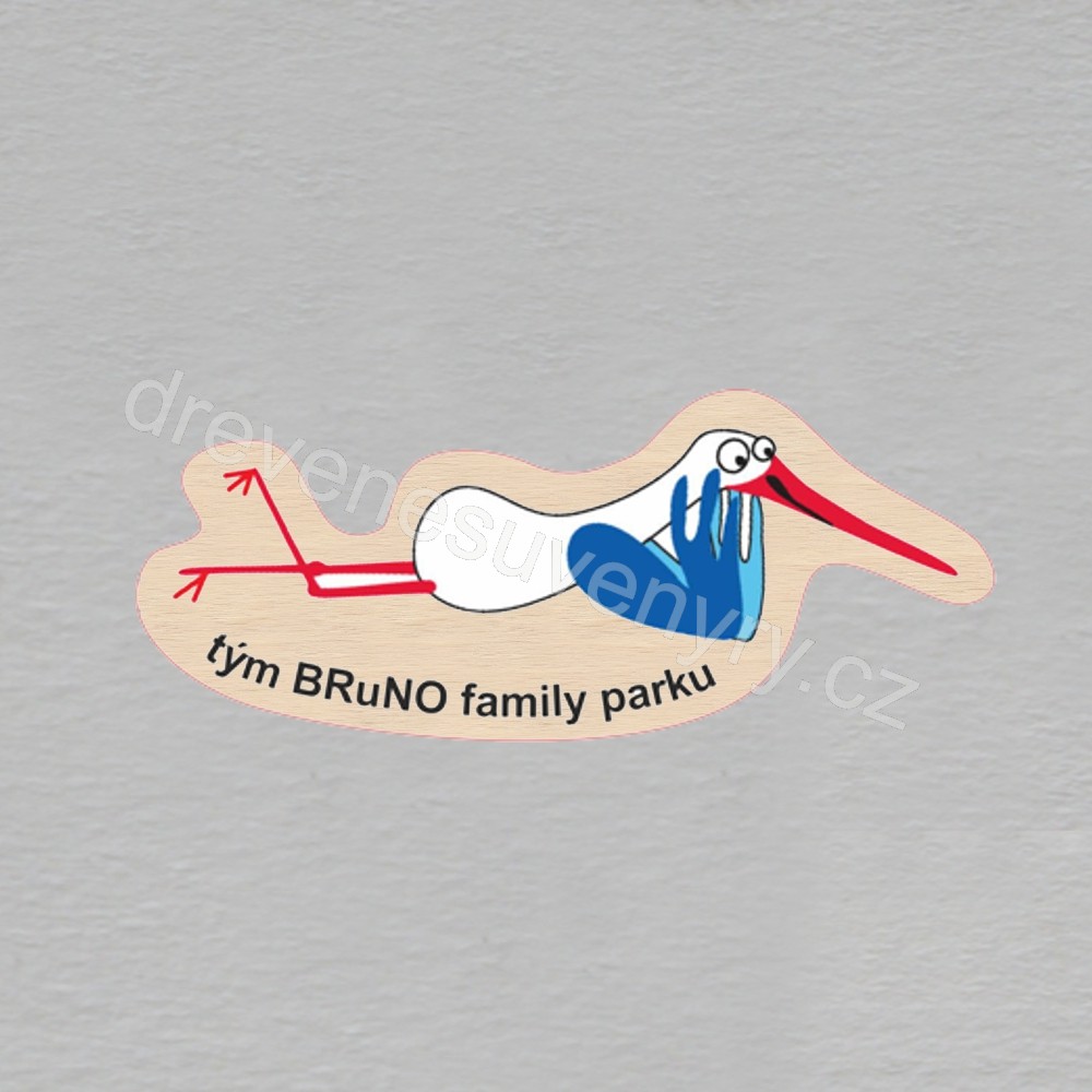 Tým Bruno family parku - čáp ležící - magnet ořez masiv