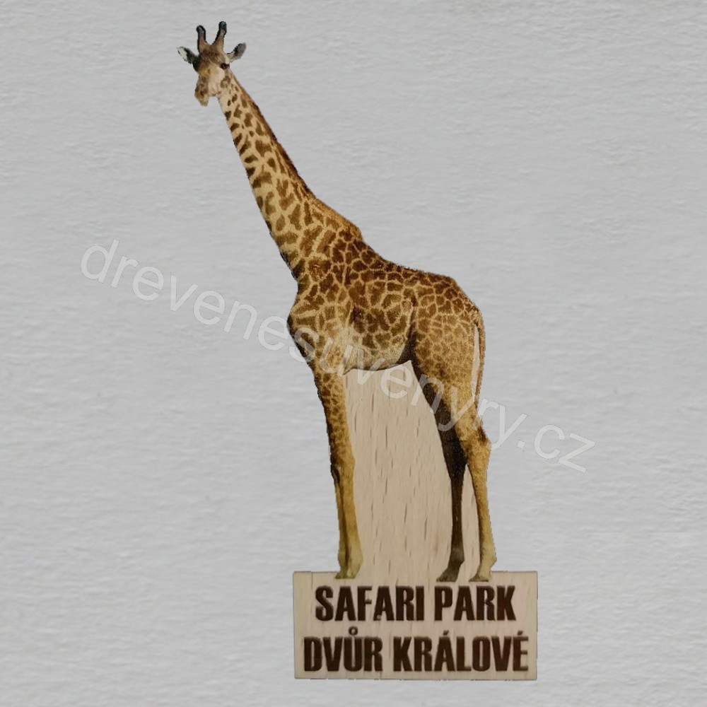 Safari pakr - Dvůr Králové n/Labem - Žirafa - magnet masiv ořez 9cm