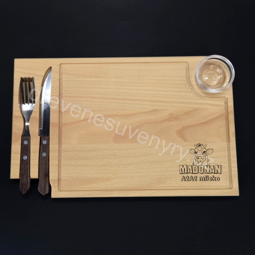 Madonan - prkénko s příborem a miskou - na steak - logo gravír