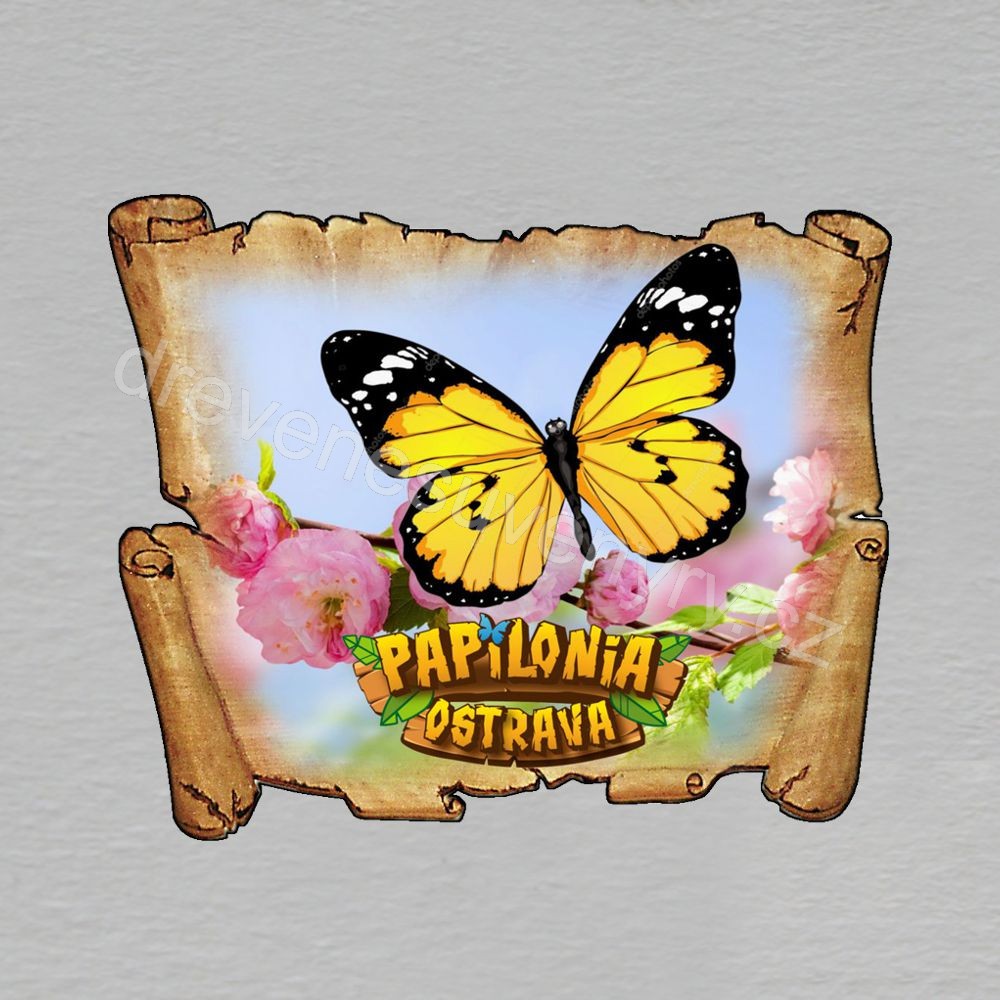 Papilonia Ostrava - motýl žlutý - magnet mini pergamen