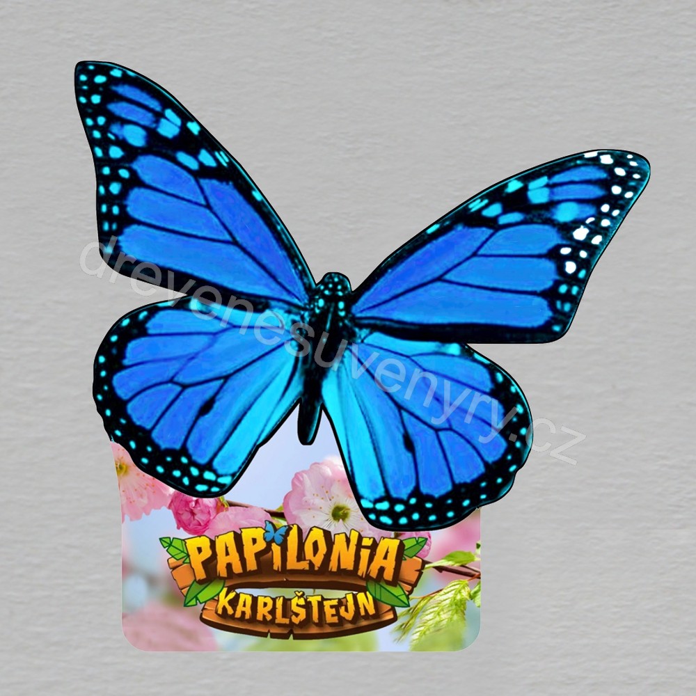 Papilonia Karlštejn - motýl modrý - magnet ořez dvojitý
