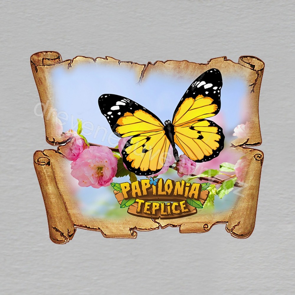 Papilonia Teplice - motýl žlutý - magnet pergamen