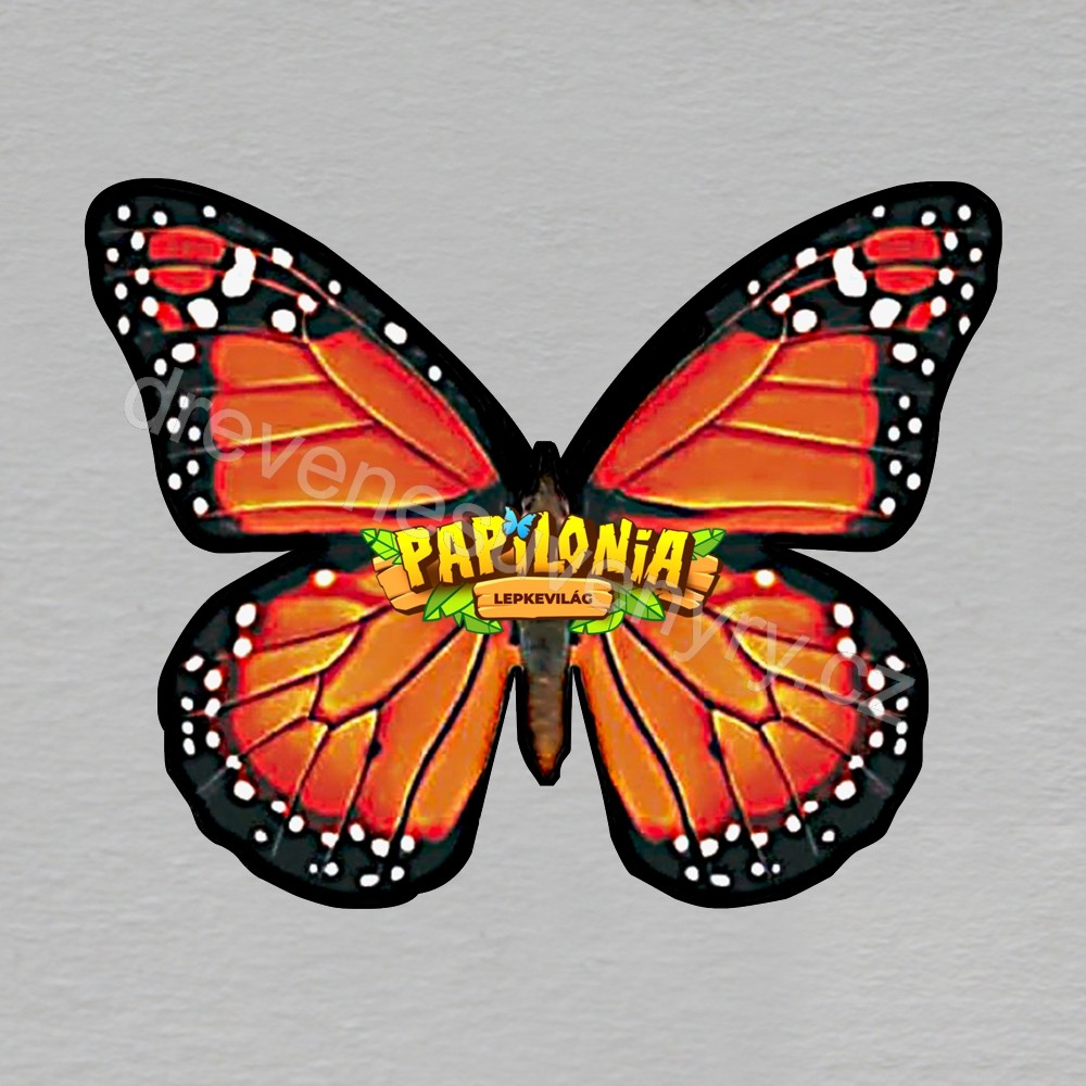 Papilonia Budapešť - motýl oranžový - magnet ořez masiv