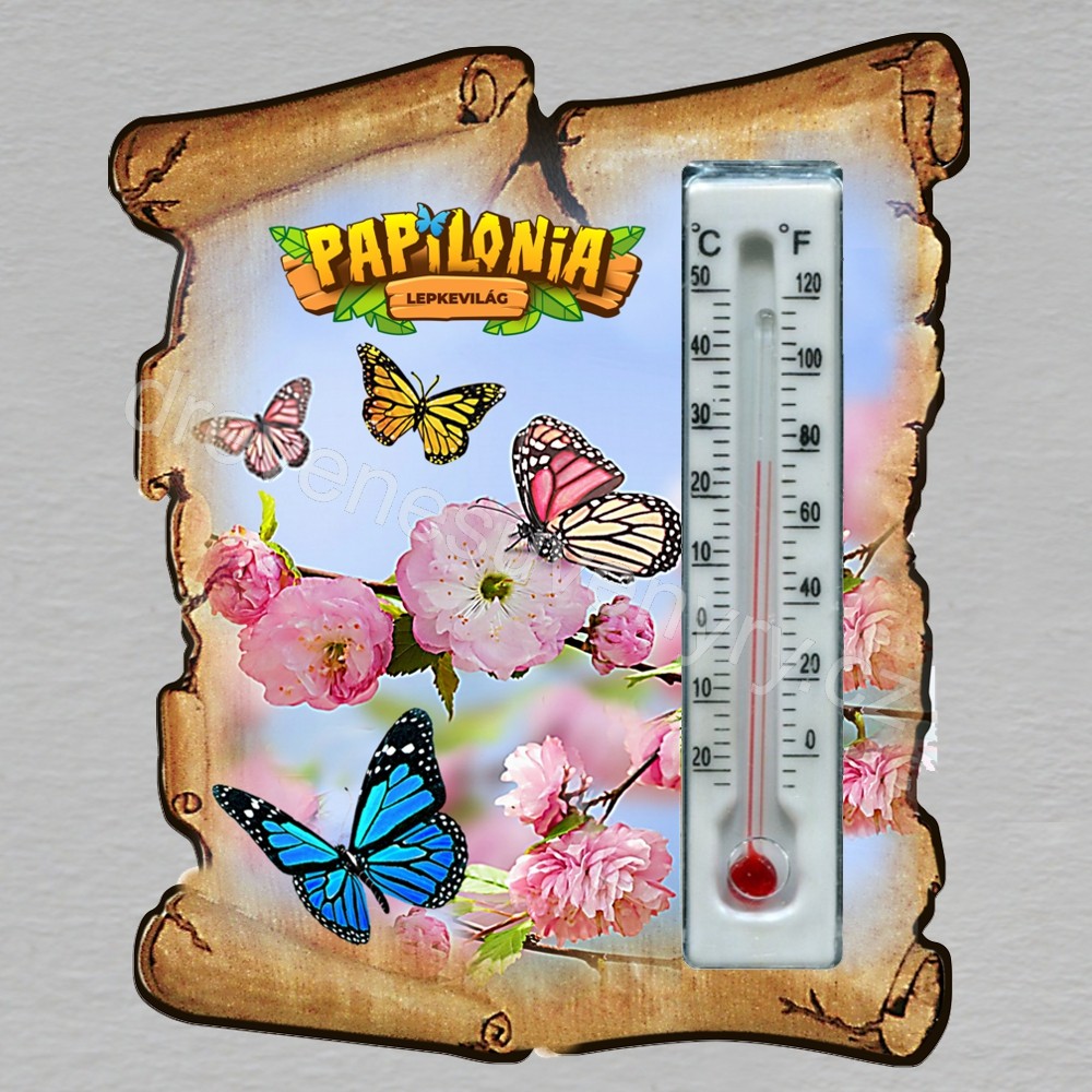 Papilonia Budapešť - magnet s teploměrem pergamen