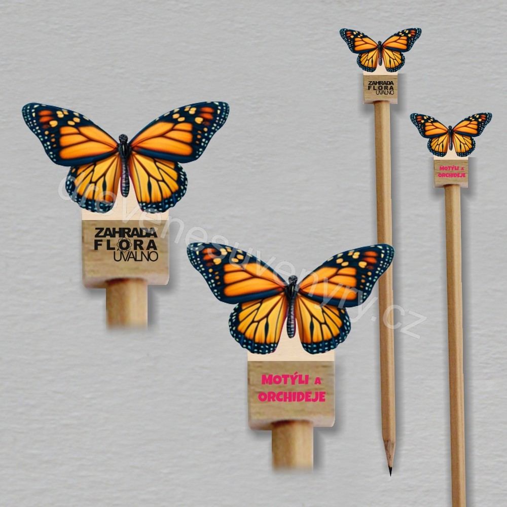 Zahrada Flora - oranžový motýl - tužka s oboustranným potiskem soklíku